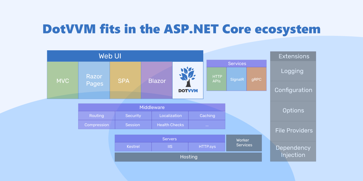 Same as Blazor, DotVVM can build web apps with just HTML and C#. However, each technology achieves this by a different architecture: